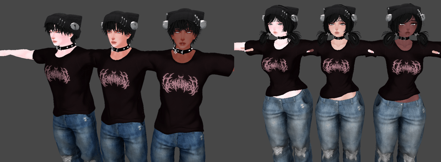 heads- sivka (realistic/anime) / cicieeea / rxsi / dumpling (heads are heavily edited, no reuse) | lip text/makeup aii0 | body- zinpia/akira (no reuse) | skin texture- yingyangvr/lunanyxia/zinpia | particles/systems- kisu | eyes- fair | fhair1/3- sleepyvrc | fhair2- saikura | fhair4- nessy | mhair 1/2/4- delor | mhair3- nessy | tshirt/sweater/hoodie/shorts/jeans- sukii | ftanktop/skirt/jewelry- sukii | mtank1- bruce | mtank2- lpb | croptop- meeva | sweater2/sweats/bracelet/jewelry- bruce | turtleneck- hoeyume | jersey/bracelets/haircharm- gelw0 | fishnets- hunty | jacket- nikkiepng | species1- bunniverse/winks | species2- velvet/winks | species3/4- winks | facechain/lipring- weeby | glasses- moonlight | beanie- apyr | cap- wen | backpack- williem | headphones- m | collar- sunnybun | plush chain- gelw0/cuupidon/cupkake | toy- aii0 | boxr- catakitty | nails- yaoomi |